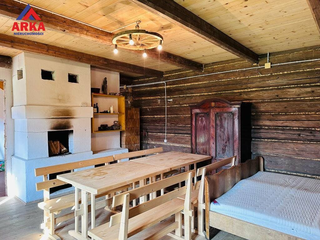 Budynek przeniesiony (posiada wszelkie potrzebne pozwolenia); bale zdrowe, częściowo wymienione na nowe. Fundamenty również nowe. Dach ocieplony wełną mineralną i pokryty gontem. Okna drewniane ze stylowymi okiennicami.